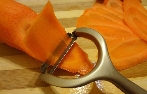 2. Отрезайте овощечисткой тонкие лепестки до самого верха корнеплода.