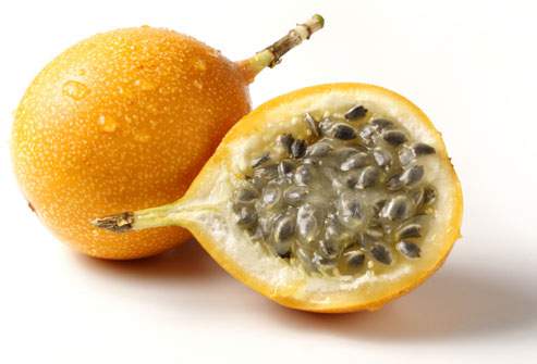 | Гренадилла | 	 Гренадилла – тропический фрукт семейства Страстоцветные, распространённый на территории Южной Америки и Африки. Гренадилла по форме напоминает яйцо, кожура оранжевого или желтого цвета, а внутри прозрачная мякоть с черными семенами. На вкус гренадилла водяная, сладкая, чем-то напоминает крыжовник или дыню.