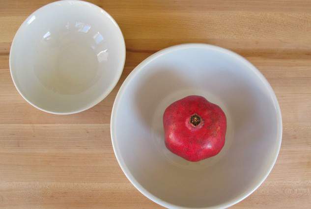 1. Поместите плод граната в большую миску, а маленькую поставьте рядом.