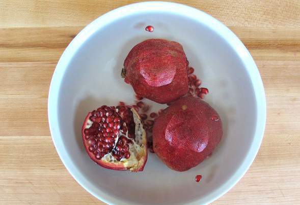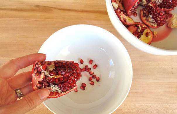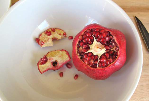 9. Когда вынете зерна из всех частей плода, удалите ненужную кожуру и сердцевину. В вашем распоряжении целая миска чудесных витаминных и полезных зерен граната.