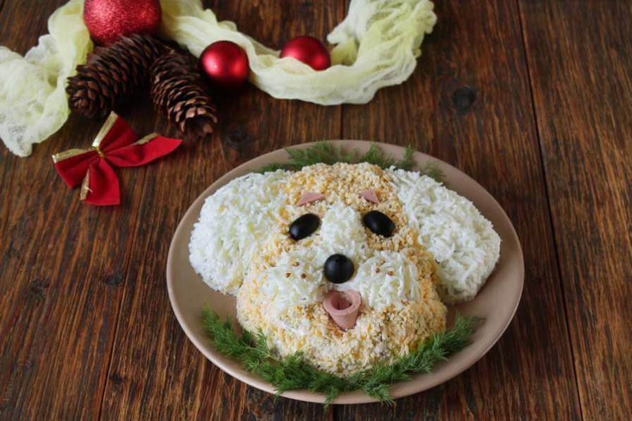 9. Новогодний салат «Собака» готов. До подачи на стол держите его в холодильнике.