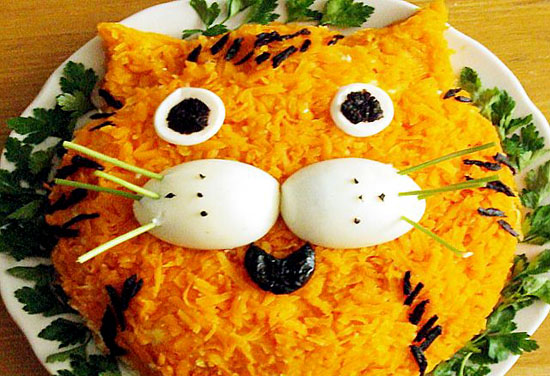 2022 год – год Тигра по гороскопу, и хоть день его властвования еще не наступил, зимние праздники пестрят его упоминанием. Популярны и закуски с изображением тигра на праздничном столе. Предлагаем вашему вниманию интересный рецепт новогоднего салата «Тигренок», который понравится взрослым и детям.