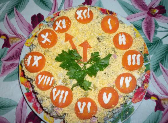 Готовим салат «Новогодние часы»