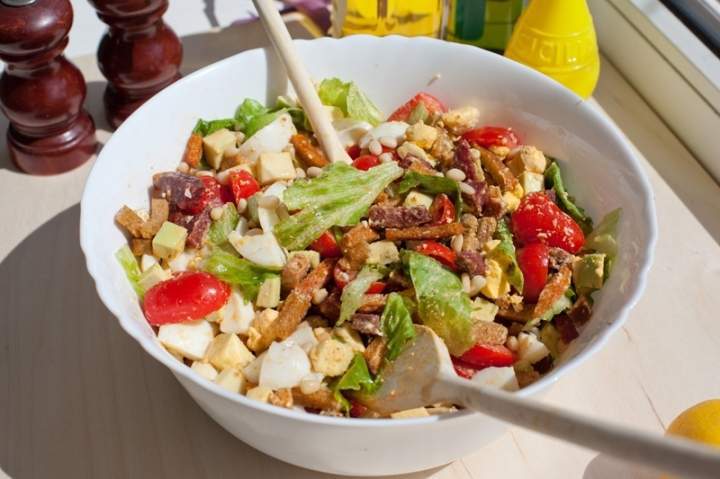 Салаты приобретают особый насыщенный вкус, если их приправить натуральными добавками – семенами, зернами, орехами. Кедровые орехи особенно полезны. В их ядрах содержится ряд минералов, необходимых для человеческого организма. 100 г кедровых орехов способны обеспечить суточную потребность организма в марганце, меди, цинке.