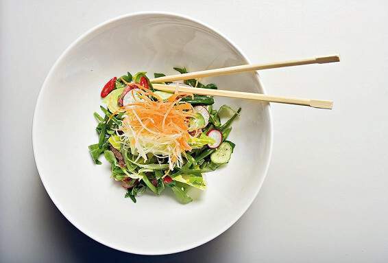 6. Посыпьте салат смесью сельдерея моркови. Подавайте Пряный салат с говядиной и зеленью немедленно.