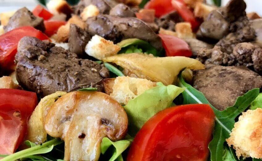 Даже если вы не очень любите куриную печень, вкусный и сытный салат с ней не оставит вас равнодушными, а значит и голодными. Предлагаем вашему вниманию рецепт тёплого салата из куриной печени с овощами, яблоком и грибами, который разнообразит ваше домашнее меню, будет украшением праздничного стола.
