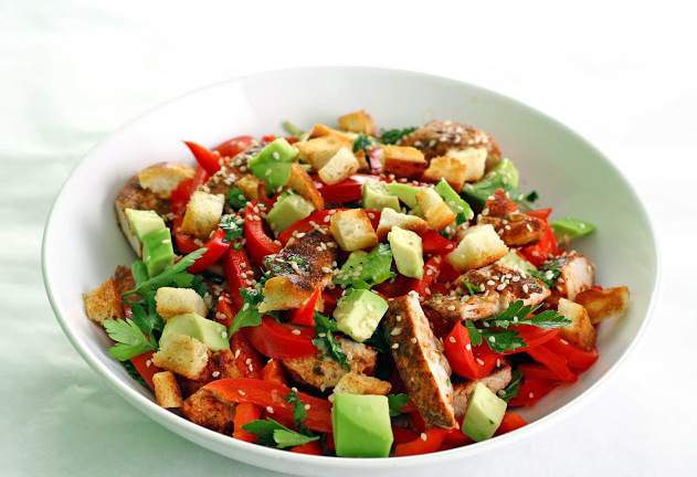 Готовим салат с курицей, красным перцем и авокадо