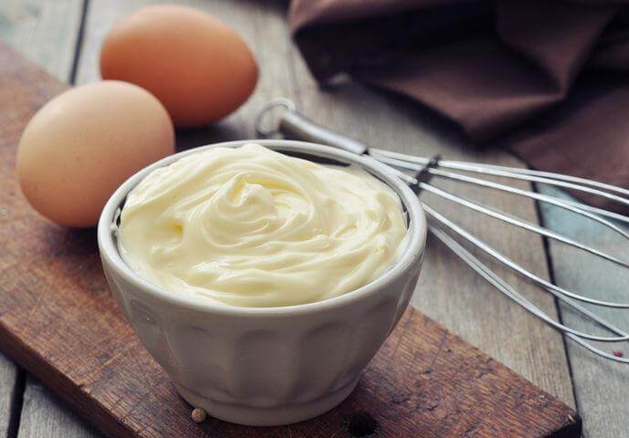 3. Добавьте еще несколько капель сока лимона или уксуса. Если майонез по вашему мнению слишком густой, влейте 1-2 ст. ложки теплой воды.