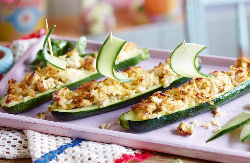 Готовим детский салат из курицы с рисом в лодочках из огурцов