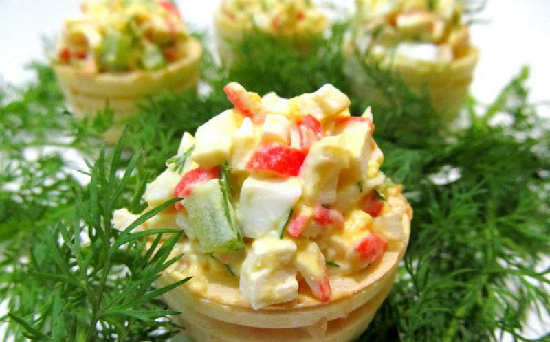 Готовим салат из крабовых палочек в тарталетках