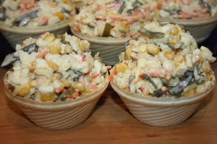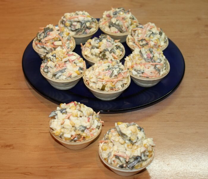 Готовим салат из морской капусты с яйцами и крабовыми палочками в тарталетках