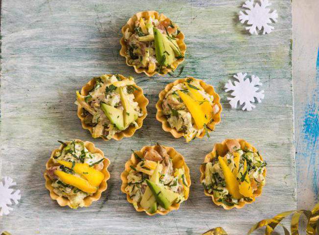 Готовим салат в тарталетках с курицей, манго и авокадо