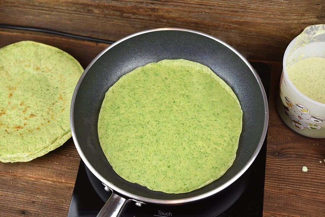 Готовим салат со шпинатом, курицей и фетой в зеленых блинах