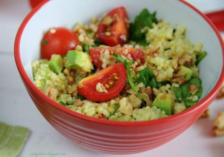 Готовим салат из пшенной каши с помидорами, авокадо и орехами