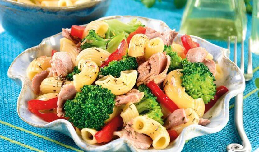 Макаронные изделия хорошо зарекомендовали себя как основа для различных салатов. Если вы любите овощи и рыбу, воспользуйтесь этим простым и быстрым рецептом, чтобы приготовить салат из макарон с тунцом и брокколи. Макароны можете взять любой формы, какая вам больше нравится, тунец – лучше в масле.