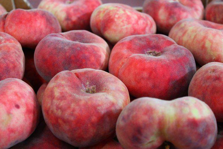 У плодов инжирного персика – плоская форма, напоминающая летающую тарелку. Эти фрукты стоят в несколько раз дороже обычных персиков, но их стоит попробовать.