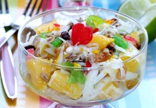 9. Разложите салат в красивые салатницы или креманки, а сверху полейте приготовленной заправкой.