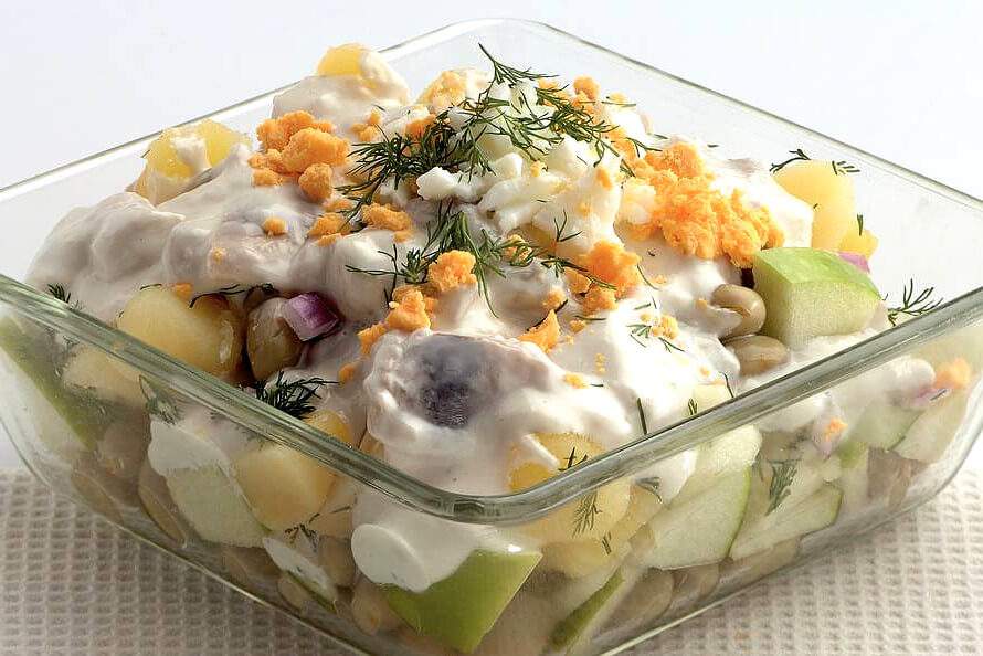 Готовим картофельный салат с сельдью, фасолью и яблоком