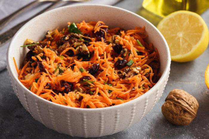Готовим салат из моркови с клюквой, чесноком и орехами