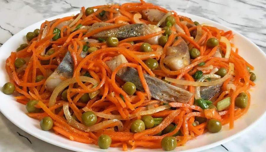 Готовим салат из моркови с сельдью и горошком