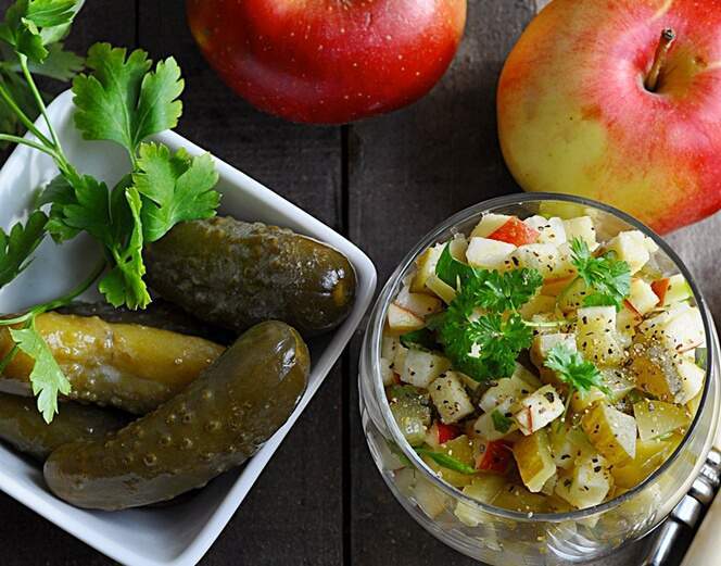 Предлагаем вашему вниманию быстрый в приготовлении рецепт простого, но очень вкусного салата из соленых огурцов с яблоками и луком. В качестве основного ингредиента в нем выступают соленые или маринованные домашние огурцы, которые придадут блюду разные оттенки вкуса в зависимости от вкуса соления.