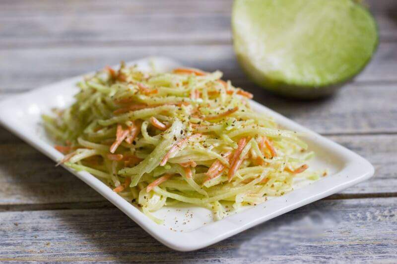 5.Охлажденный осенний витаминный салат с редькой подавайте к столу как дополнение к основным блюдам, а также с отварной или жареной картошкой.