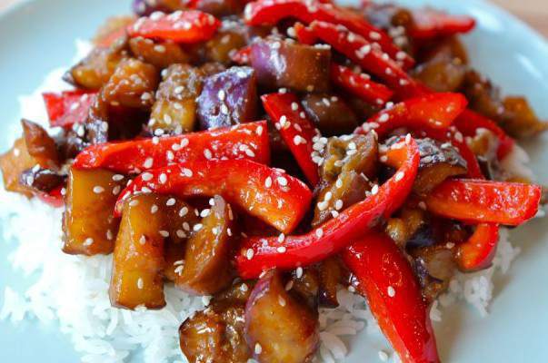 5. Отдельно обжарьте кусочки перца и добавьте к кабачкам и баклажанам.