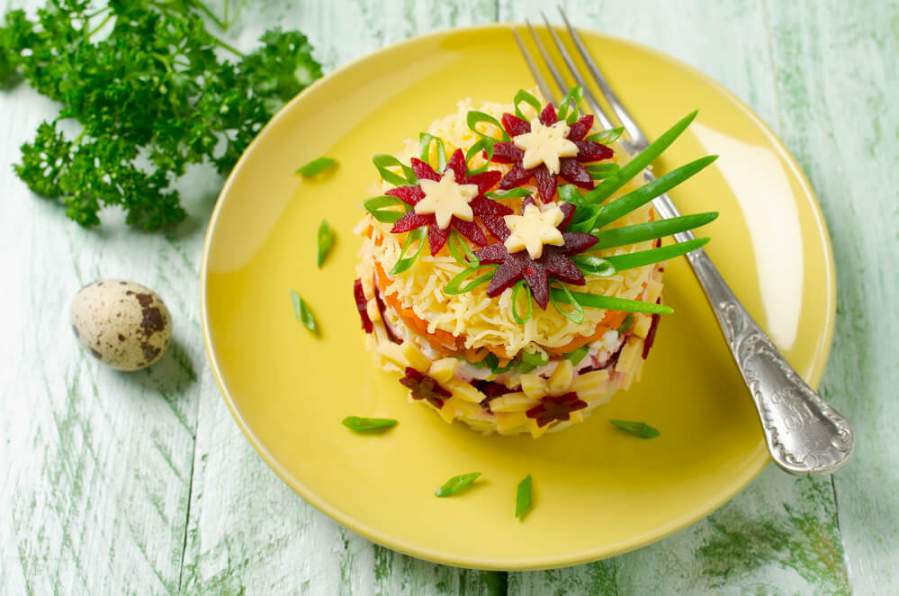 Готовим слоеный салат из овощей, яиц и сыра к 8 марта