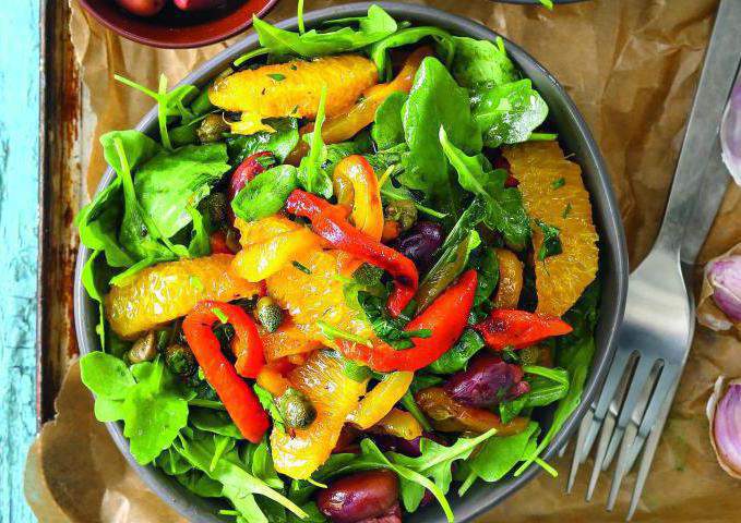7. Плотно закройте контейнер и поставьте салат мариноваться в холодильник на час, можно на ночь. Перед подачей достаньте салат с печеными перцами и анчоусами из холодильника перемешайте его с руколой и сбрызните оливковым маслом.