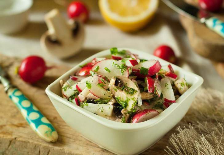 С приходом весны нам всегда хочется какой-то легкой весенней еды, свежих овощей и фруктов. Как правило, самым ранним овощем считается редис, поэтому салат из редиса именно то, что нужно весной. Предложенный рецепт не очень то и прост как все остальные с редисом. Этот салат подойдет не только на каждый день, им можно удивить гостей и украсить праздничный стол.