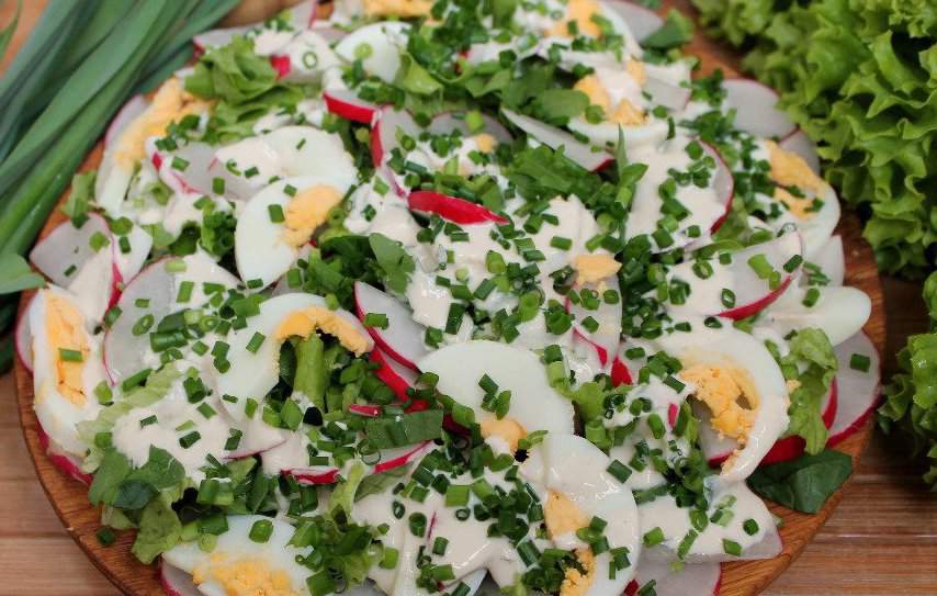 Готовим весенний салат из редиса с зеленью и яйцами