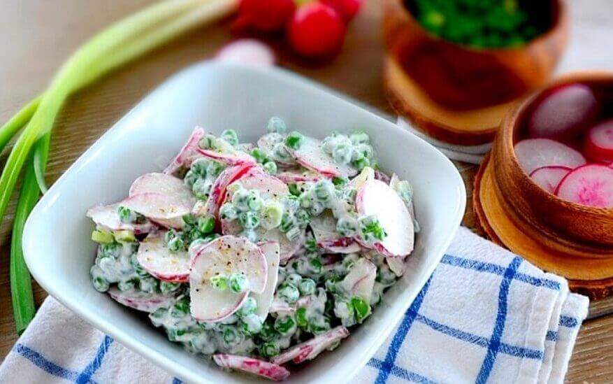 Редиска и зеленый горошек замечательно сочетаются в салатах. В летнюю пору можно воспользоваться молодым сладким горошком из стручков, но весной, когда на грядках только появляется редиска, сойдет и замороженный вариант. Предлагаем рецепт аппетитного весеннего салата из редиски с зеленым горошком.