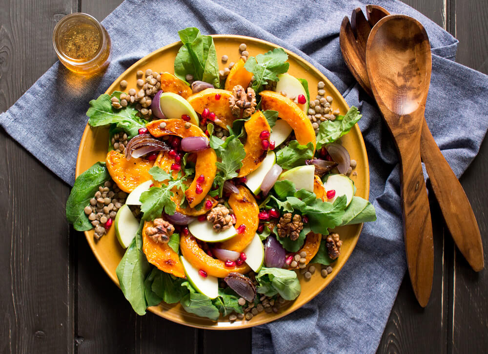 Готовим салат из тыквы с чечевицей и ореховой заправкой