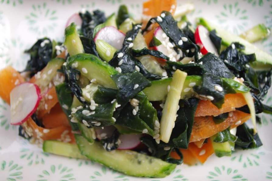 Всем известно, что водоросли – вкусная и очень полезная еда, которая обладает одной из самых высоких питательных плотностей. В водорослях содержится в 10-20 раз больше микроэлементов и витаминов, чем у наземных растений. Предлагаем рецепт здорового, аппетитного салата из водорослей вакаме с овощами.