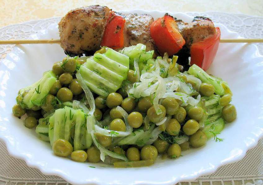 Готовим салат из зеленого горошка к шашлыку