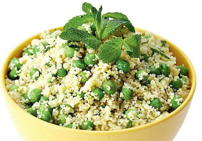 Зеленый горошек – овощ кратковременного сезона. Но все же, из него можно готовить блюда круглый год, используя в консервированном и замороженном виде. Предлагаем вашему вниманию удачный рецепт вкусного и сытного салата из зеленого горошка с кускусом, как простую альтернативу вегетарианскому плову.