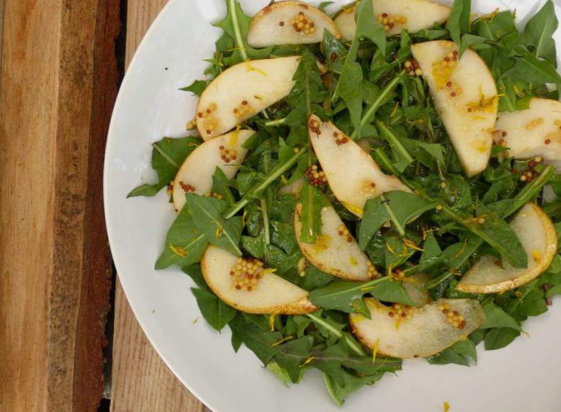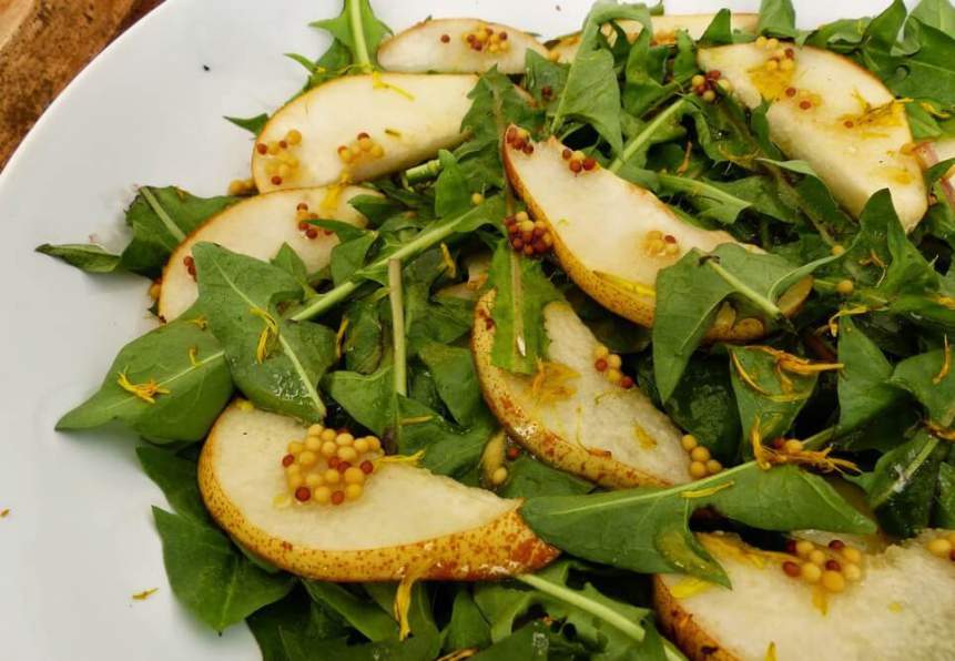 Готовим салат из листьев одуванчика с грушей