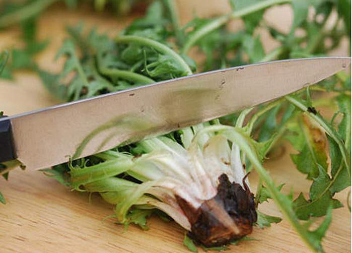 1. Молодые небольшого размера листья одуванчика замочите на полчаса в холодной подсоленной воде для удаления возможной излишней горечи.