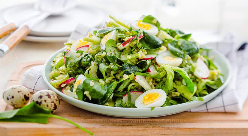 Готовим салат из щавеля с яйцами, редисом и булгуром