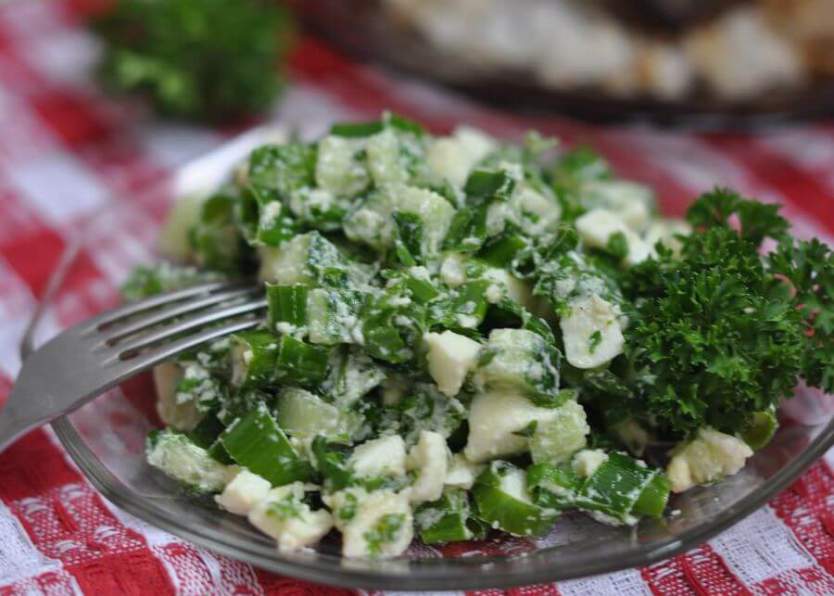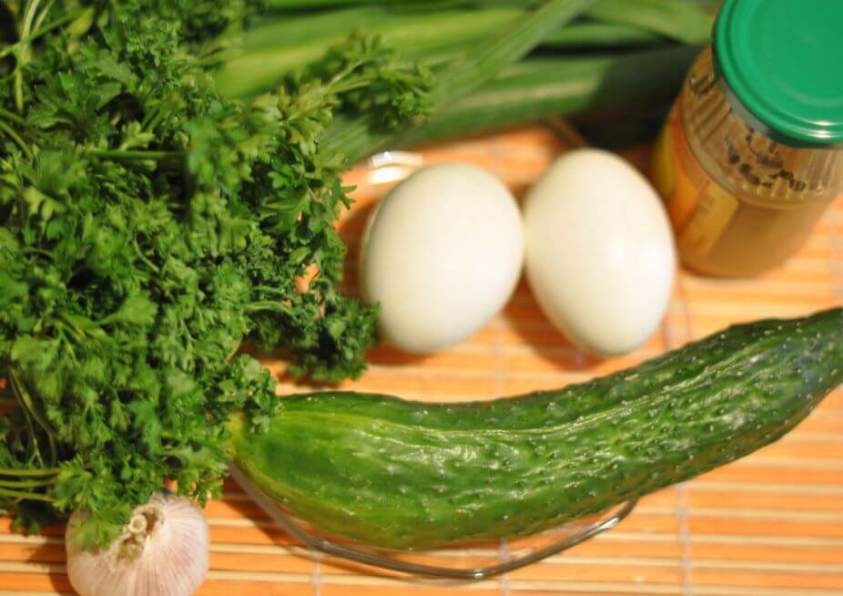 Готовим салат с зеленым луком и яйцами под горчичной заправкой