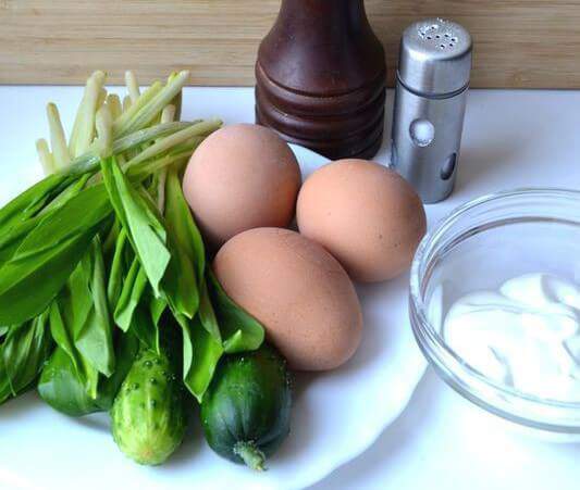 С приходом весны в продаже появляются пучки побегов черемши. Не все желают использовать это растение в домашнем меню из-за специфического чесночного привкуса, но именно эта особенность придает блюдам с ее участием пикантные нотки. Предлагаем рецепт весеннего салата из черемши с яйцами и огурцами.