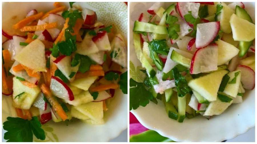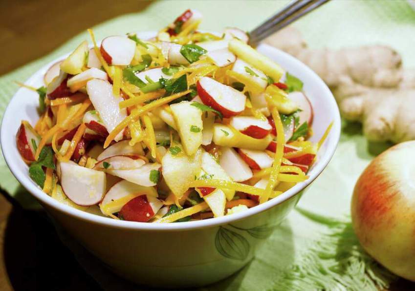 Готовим весенний салат с редисом, яблоком и имбирной заправкой