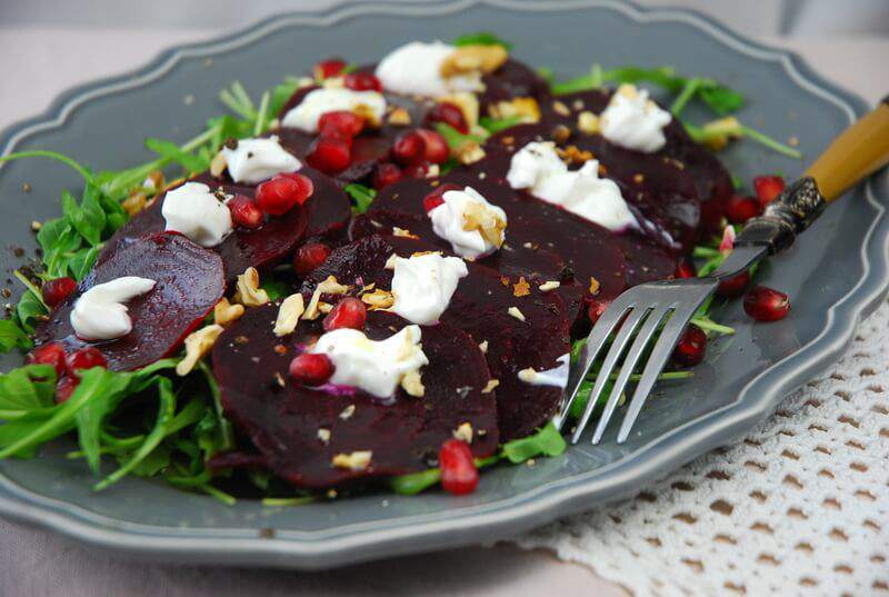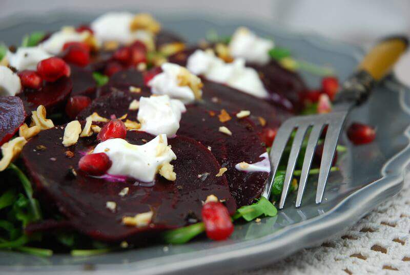 Готовим салат из свёклы с козьим сыром, гранатом и орехами