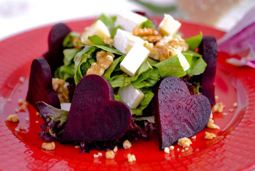 Валентинкой ко Дню Влюбленных может стать не только открытка или шоколадка, но и красивое, вкусное блюдо, заботливо сотворенное своими руками. Предлагаем простой рецепт эффектного валентинкового салата из свёклы с фетой, зеленью и грецкими орехами, который непременно оценит тот, кому он готовился.