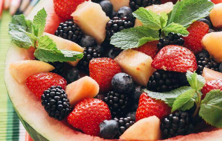 6. Добавление небольшого количества овощей. Некоторые овощи отлично сочетаются с фруктами и ягодами в салате. Например, тандем арбуза и дыни выгодно дополнит свежестью огурец. Авокадо рад подружиться с помидорами. Не бойтесь экспериментировать, и вы найдете для себя не одно такое сочетание.