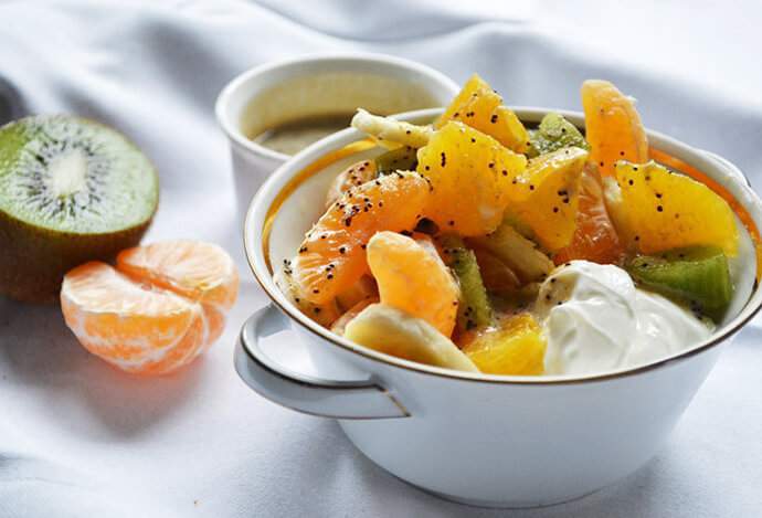 2. Заправки с медом и травами. Такие заправки придадут вашему салату дополнительную приятную сладость и аромат. В особенности, если фрукты, отобранные для салата, кисловатые, с нейтральным запахом. Запомните формулу – цитрусовый сок + мед + свежие травы. Но, когда свежую траву приобрести проблематично, можно использовать сухую.