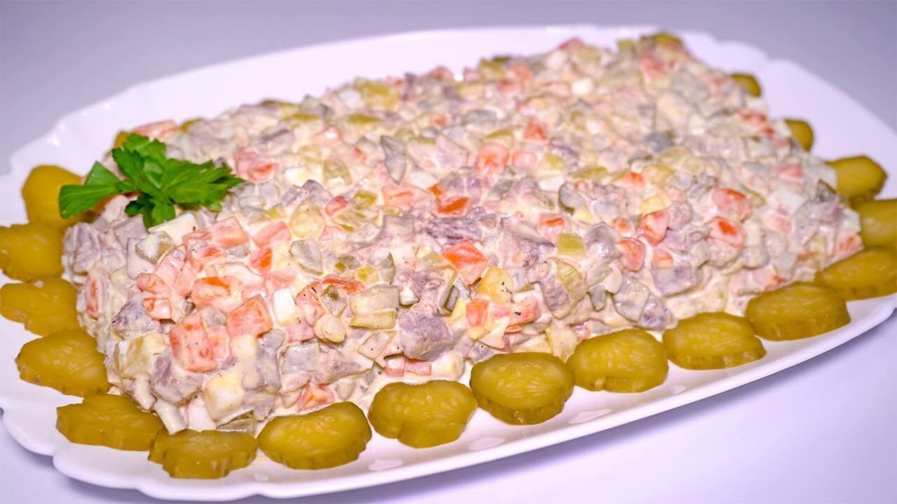 Готовим праздничный салат «Оливье» с говяжьим языком
