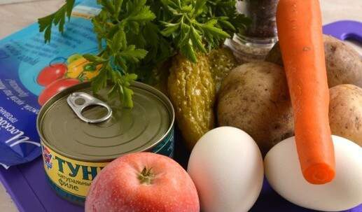 Если вы любите популярный салат «оливье» и не прочь испробовать разные варианты его состава и приготовления, то заинтересуетесь рецептом салата «оливье» с тунцом. Привычная колбаса и отварное мясо в списке ингредиентов заменена консервированным тунцом, который в народе называют «морской говядиной».
