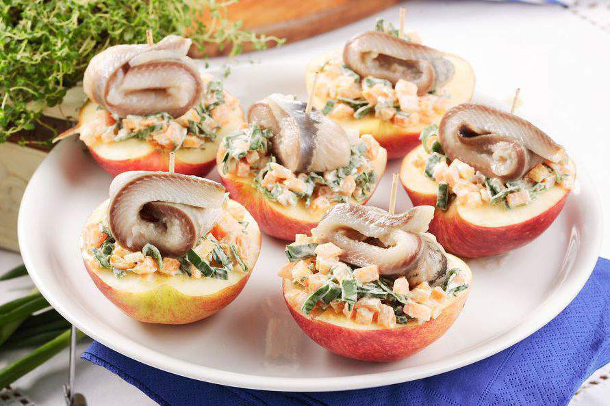 Готовим селедочный салат в половинках яблок