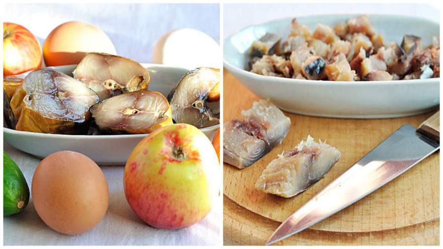 Готовим салат из копченой скумбрии с яблоками и яйцами